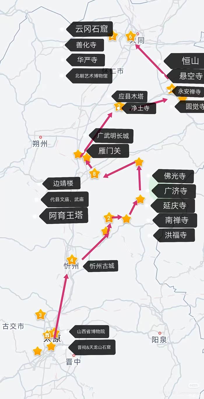 2025暑假即将结束,这也许是女儿学生时代的最后一个暑假了,今后面对的将是996白加黑的牛马生活。此次自驾以大同和太原为核心,串联晋北的佛教艺术与晋中平原的历史文化,全程刚好1000公里,建议安排 6天5晚。路线涵盖大同古城、云冈石窟、北岳恒山、应县木塔、代县雁门关以及晋祠、乔家大院、山西博物院等世界遗产、自然人文景观。