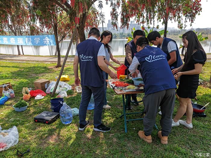大家互相打着招呼,帮忙搬运物资,尽管很多人是第一次见面,但因为对奇瑞汽车的共同热爱,彼此之间毫无陌生感。