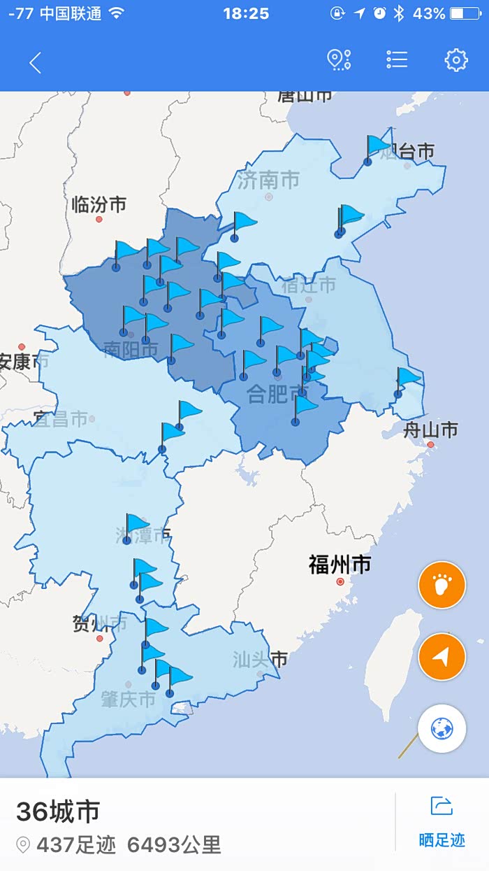 由于特殊的工作原因。我经常会几个省之前来回往返,所有插旗的地反都是我开着S5开车经过的地方。