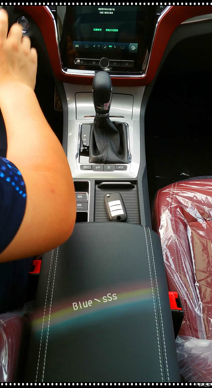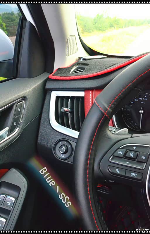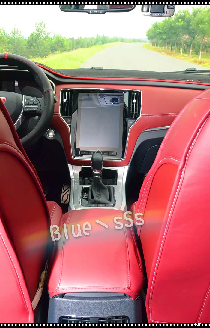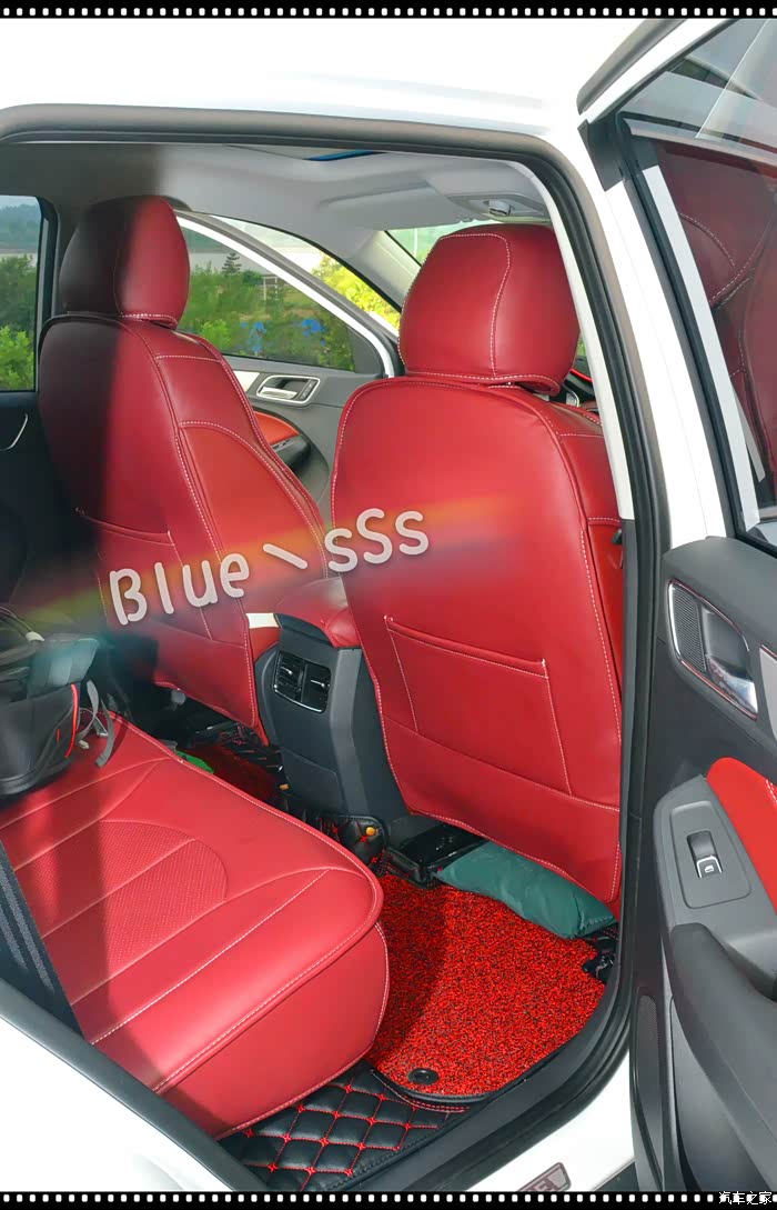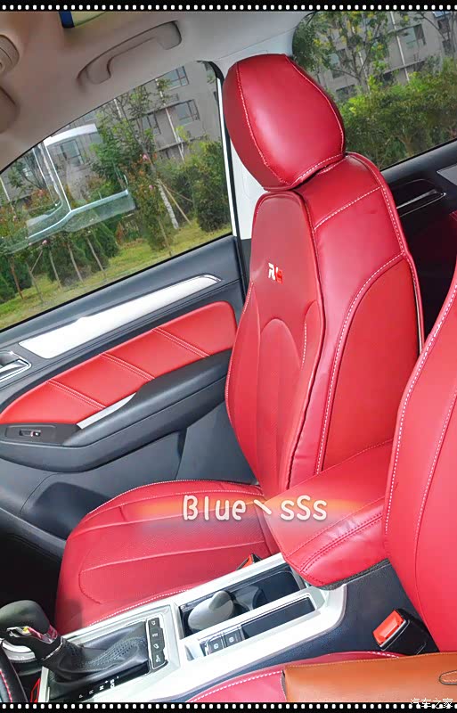 车外看的差不多了,下面看看车内的情况,需要说明的是座椅在拍照片时已经安装了红色座套,所以样式会跟原版的有差异,其他部分如仪表台、排挡部分等都加装了防护车品,跟大家说明一下。