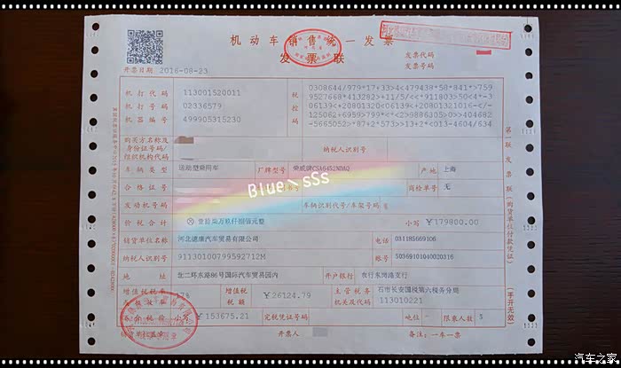订车后跟大家一样,每天都等着盼着,希望爱车早点到店,大概等了二十多天,接到了销售的微信,让我准备钱,提车!当时虽然谈不上非常兴奋,但是确实很高兴,毕竟这二十多天等的也很辛苦,可后来因为各种原因车没提成。这是河北省第一台四驱,本来是我的,白外黑内,正是我要的款,但无奈……就这样又过了好几天,8月22日得知又有一辆四驱到店,于是马上就去店里现场查看,是白外红内的款,因为想提车的人不少,我不提的话后面不少人盯着呢,所以经过几个小时的考虑,我决定交钱提车。跟销售咨询了需要准备的东西后,23号早早就到了4S店,交钱、提车!