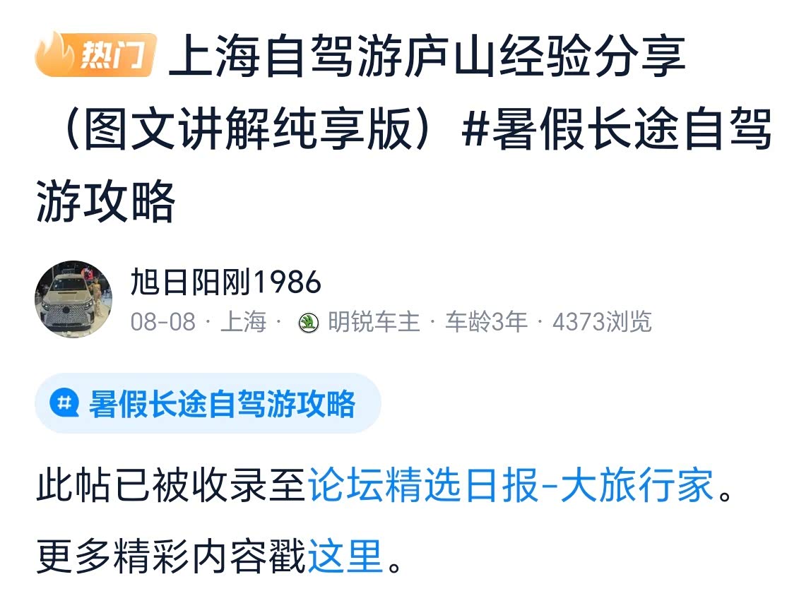 慢慢的,我不再只做那个“躲在屏幕后看帖的人”。记得第一次在评论区问“新手开车怎么判断车距”,有位老车友耐心回复了好几百字,还附上了自己画的示意图,那份热心让我记了好久。后来我自己也摸清了用车的门道,就想着“我是不是也能帮到像我当年一样迷茫的新手”?于是开始试着写第一篇帖子,把自己选车时曾经遇到的“低开发票”的坑、开车时总结的“堵车缓行灵活运用M档主动升到3档更省油”的小技巧,一笔一划敲出来。到如今我竟然发了将近900多篇帖子了,也有将近100篇被评为热门或精选。尤其看到有车友留言“多亏你的帖子,让我避坑了”“这个省油技巧太实用了”等,心里暖得像揣了个小太阳——原来我也能从当年的“小白”,慢慢变成能给别人搭把手的“老司机”。后来我更积极了,带家人去周边露营,去景点自驾游,我也会把路线、停车点、适合孩子玩的地方都写进帖子,还有就是把“如何保养更省钱,还有就是如何买车险”等用车亲身体会和经验会分享出来,期望帮助更多的车友。看着越来越多车友在评论区互动,一起维护这个没有套路、只有真心的社区,我更觉得,汽车之家不仅给了我知识,还让我找到了一群志同道合的朋友。