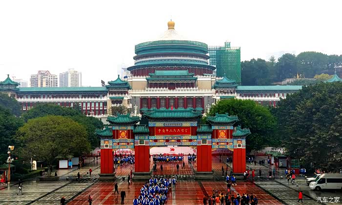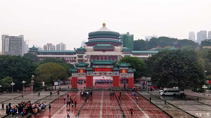 11月17日,星期日,阴,雨。今天,我们继续重庆市区的参观之旅。准备用一天时间参观重庆市的几个标志性景点。我们安排的路线为:重庆人民大礼堂-最美中山四路(曾家岩周公馆、戴笠公馆、桂园)-轻轨李子坝站-人民解放纪念碑-洪崖洞,然后到江边看重庆夜景。
