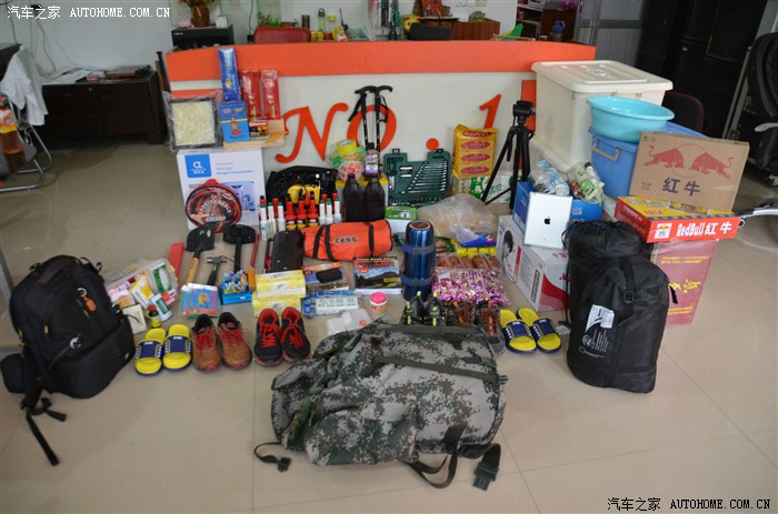 工具箱,制氧机 ,睡袋,各种药品,公路地图,工兵铲,卷纸,辛烷提升剂,燃油宝,拖车绳,插排,雨衣,汽车保养用品一套,充气泵,小吃,食物补给,千斤顶,登山杖,红牛,加多宝,苏打水,矿泉水,胶带,电瓶连接线,漱口水,三条烟,得利斯大火腿六只,ipad,酒精,垫木,各种包,各种箱子