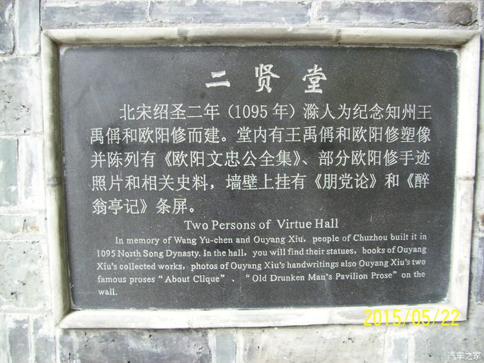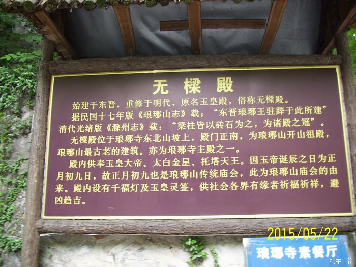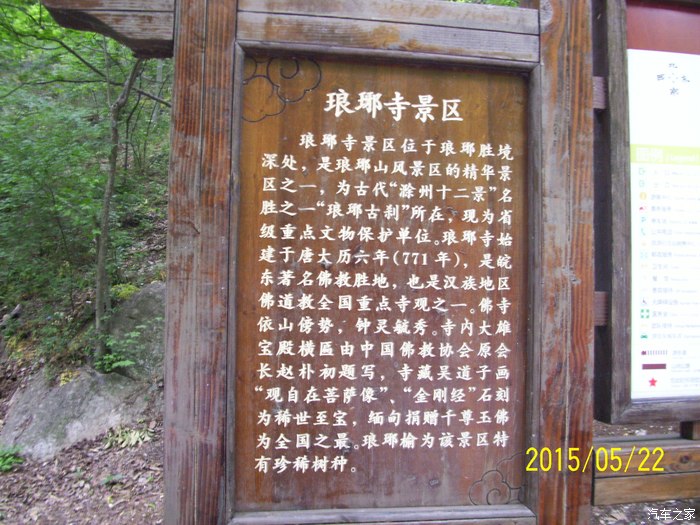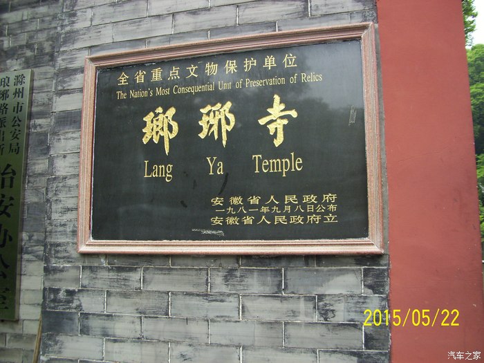 汽车之家坛子基本天天上,好久没有发帖子了大概有一年多了吧。今天冒个泡。小博买了快俩年了,目前跑了38000多公里,除了有时有点轻微抖动基本没什么毛病。这俩年开着小博跑玩了不少地方,去过杭州,徐州,青岛,还有离家不远的泰州,扬州,南京等,由于没有拍什么照片所以没有跟坛友们分享。 五月二十一号晚上没什么事上携程网看看离家不远有什么景点可以玩,无意中看到安徽滁州有个瑯琊山风景区,看网友们评价不错,于是决定第二天去玩一下。{由于本人文化不高,对历史了解又不多,以为这个瑯琊山和那个狼牙山五壮士是一个地方,闹了不少笑话] 请大家不要见笑。下面就借用网上的介绍和大家分享一下: