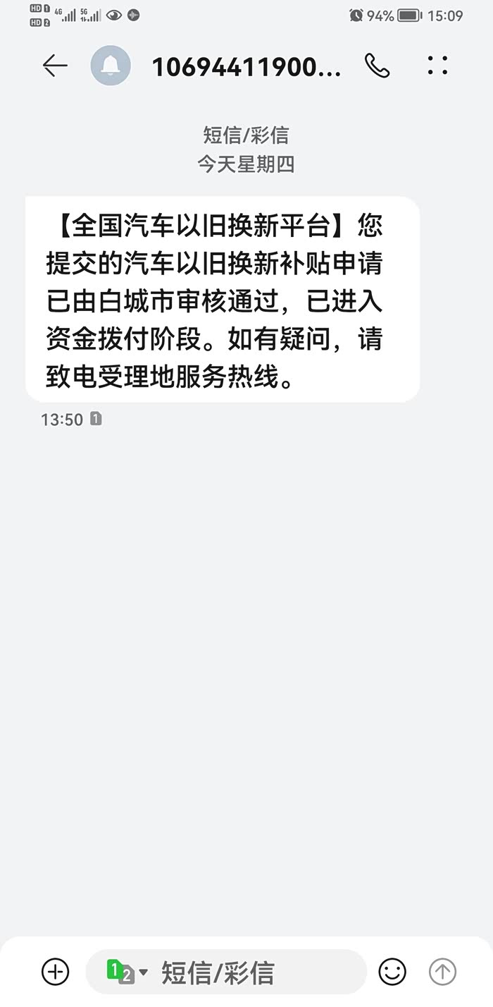 各位车友好!国补以旧换新通过审核,多久能拿到补贴啊?