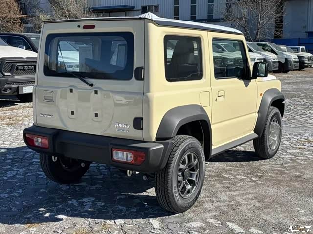 2025款铃木吉姆尼依然采用三门式设计,车身整体短小紧凑。在侧面,一条与大地平行的腰线贯穿前后,看上去十分硬朗。至于车尾,新车的设计感相比现款车型更弱,不过尾灯组由尾门两侧全部移动到了后保险杠两侧。这仿佛是在向第一代或第二代吉姆尼致敬。新车提供了黑色、白色、绿色、黄色、蓝色等十分丰富的颜色可选。鲜艳的颜色配合黑色车顶设计,让其粗犷而又不失时尚元素。