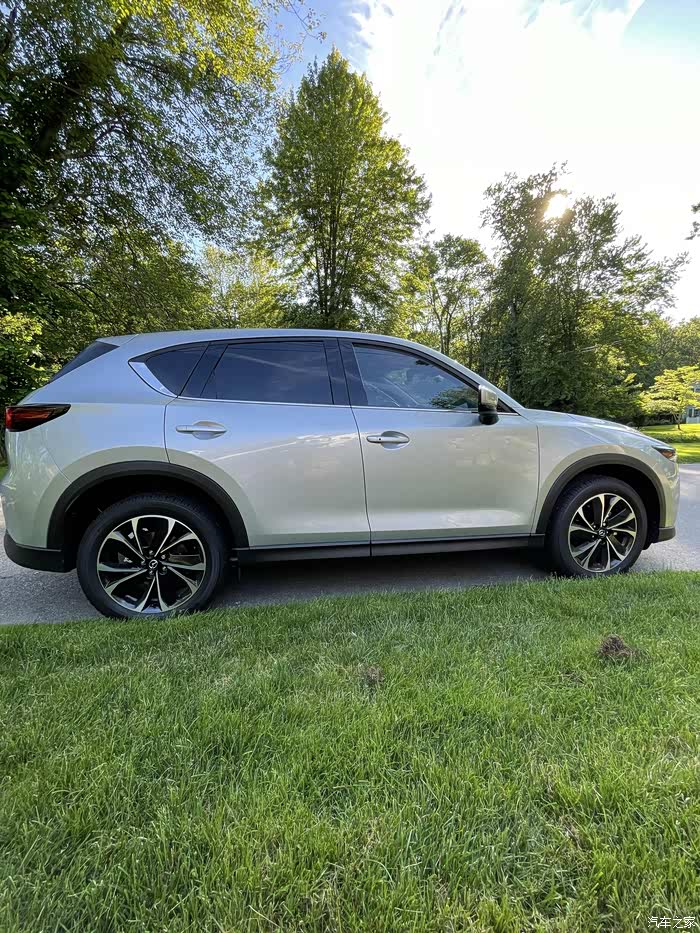 这次提CX-5没有犹豫,4S店现车不多,本来要黑色,实地发现银色的更好看。2022年开始,所有CX-5都标配四驱(类似斯巴鲁),外观略有改动。动力2.5,premium版本,配置大概相当于至尊型?0首付,贷款6年2.74%。