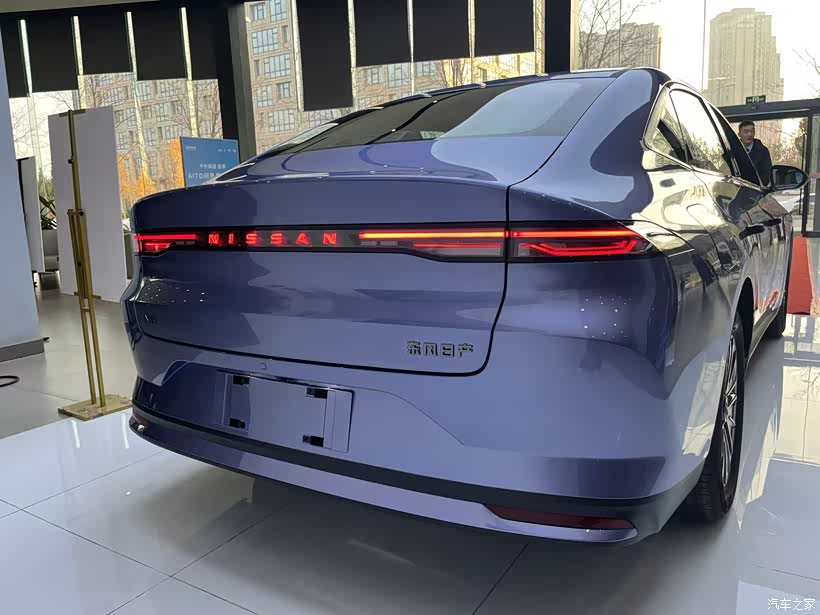 车尾看着中规中矩,后备箱上沿和两侧衔接得挺圆润。贯穿式尾灯是最亮眼的,中间“NISSAN”的标志是隐藏发光的,后备箱开锁键就在牌照板中间的小方块里,挺好找。就是车身下面用的是黑色塑料,看着有点廉价,要是能跟N7一样就好了,这点有点可惜。