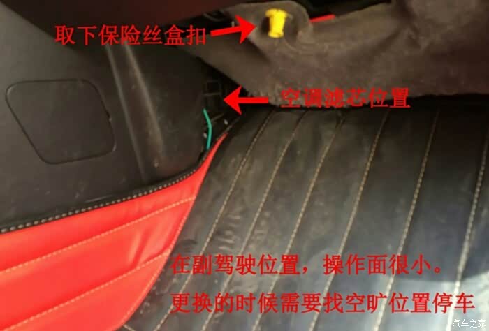 2、把副驾驶座位挪到最后面吧。都说空调滤芯难换,我觉得换起来并不难,就是这个地方空间太小,换的时候姿势太难找了,很别扭。
