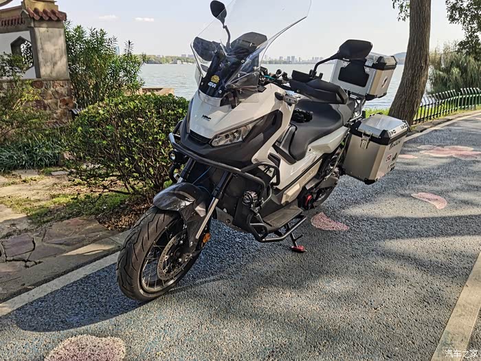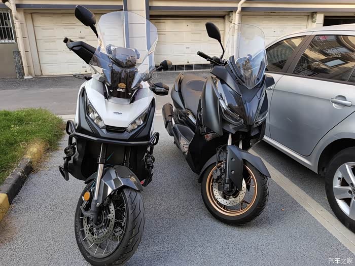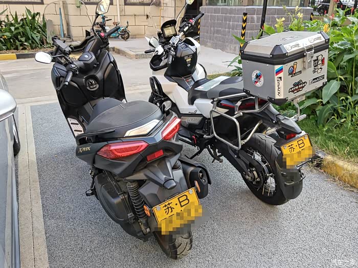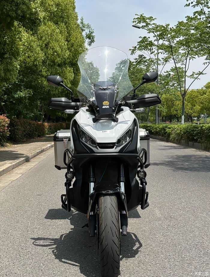 xadv到家就把边箱拆了,通勤方便,xadv车子真重,挪车和撑大撑要把力气,怠速抖动非常小,双缸踏板就是不一样,原车主改了欧版前避震,离地间隙168mm,目前坐姿比xmax还高一点。