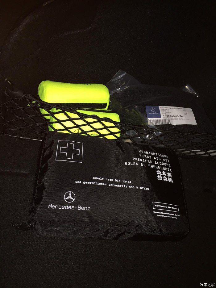 翻了一下后备箱有手册,储物网,急救包,紧急求助的黄色衬衫等。