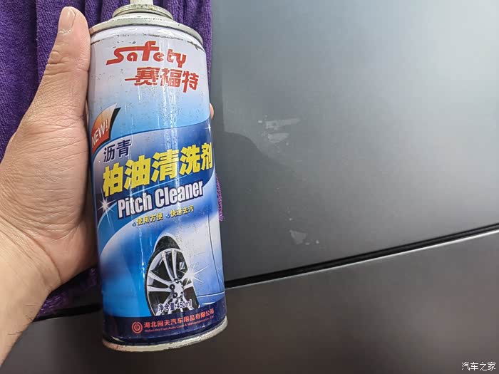 其次就是在使用柏油清洗剂的时候,不要直接喷在车漆上边,腐蚀性非常强,最好是喷在毛巾上,再用毛巾去清洁车漆上的胶印或者污垢。