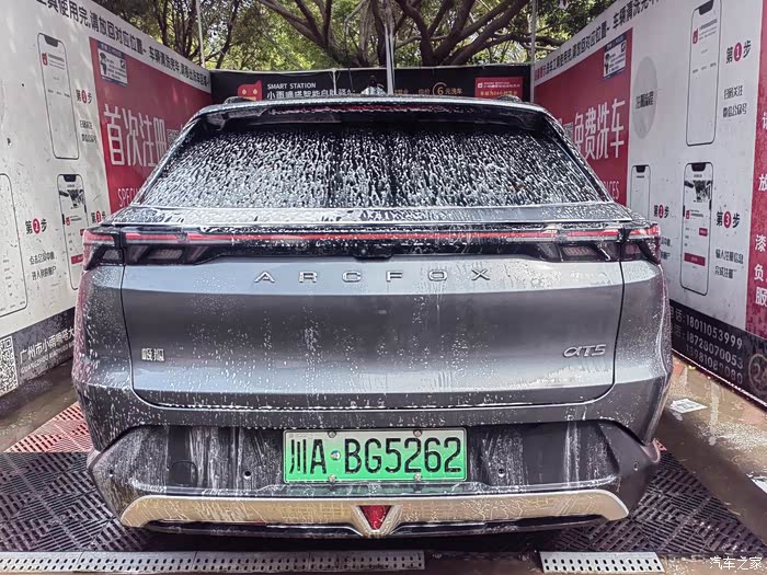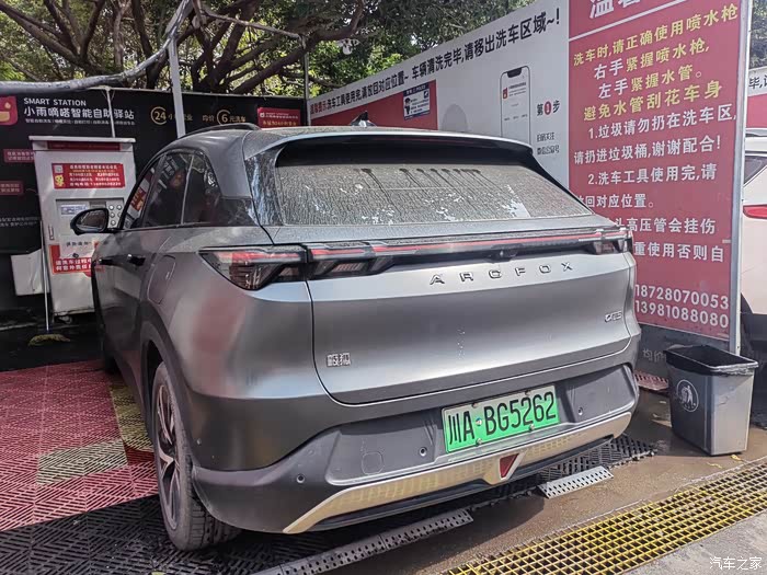 我今天选择的是一个自助洗车站,这里可以提供水枪泡沫,首先,使用水枪将全车冲洗一遍,然后再使用泡沫枪全车喷上泡沫,再接着就用洗***布将外观的污垢清理一下,最后再使用高压水枪进行全车冲洗,整个外观就冲洗干净了。我自己准备了几张毛巾,这样可以快速的将车漆上的水印给去掉。