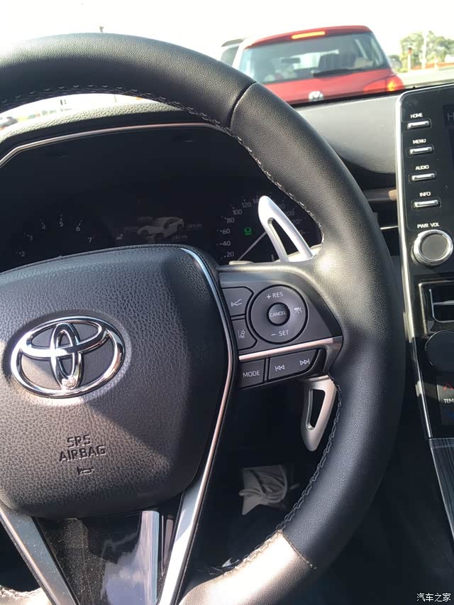 刚开始的时候对这张大嘴还是不适应,总觉得的有点夸张,慢慢的看多了感觉这大嘴还是蛮性感的,为了不让整个中网看上去那么的单调,花了20块钱买了一个金属的TRD的贴标,贴上以后感觉有那么一丝丝的点缀效果。之前网上都说亚洲龙的三眼大灯和鱼骨大灯的气质有差别,其实看习惯了感觉这个三眼大灯也还行,毕竟也不是裸眼,还有周围的电镀灯眉不错。