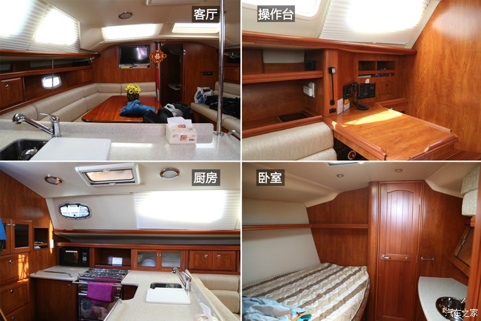 经过老公坚持不懈的诱导和灌输,我终于慢慢了解到,原来只有比赛用的帆船才会很小,为了减轻重量、提高速度,能省的设备也都省了,卧室、沙发都别想了。但用于玩耍和旅行的帆船,则“大”不相同,船身尺寸大多在35英尺以上,至少配备一室一厅一厨一卫,多则有三间卧室,席梦思、沙发、橱柜、音响等舒适性配置一应俱全。而更大的船身,对于风浪的抵御能力也有所提升,因此安全性和平稳舒适性也会好很多。