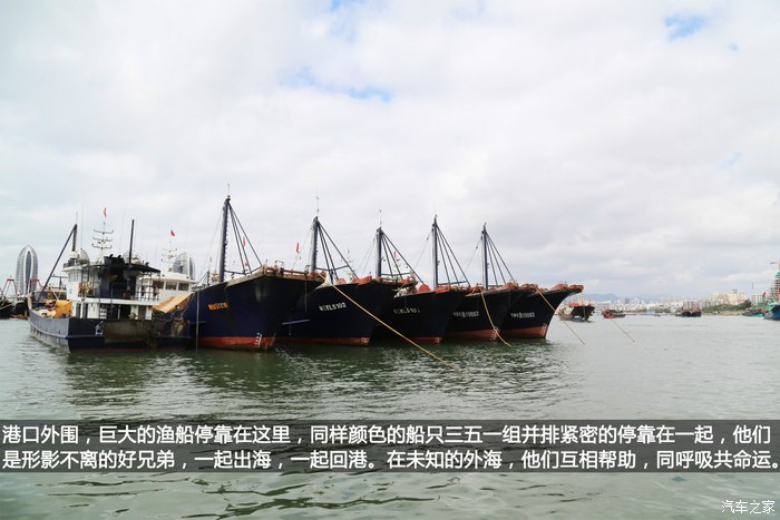 大拨儿大拨儿的渔船出港作业,如之前所说,同样颜色的船只组成一个队伍,一起出港,巨大的渔船,很有气势。