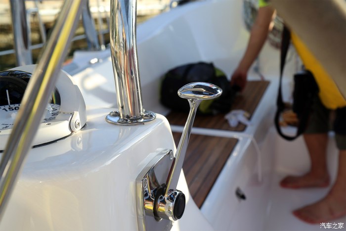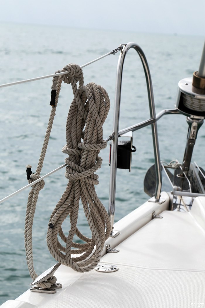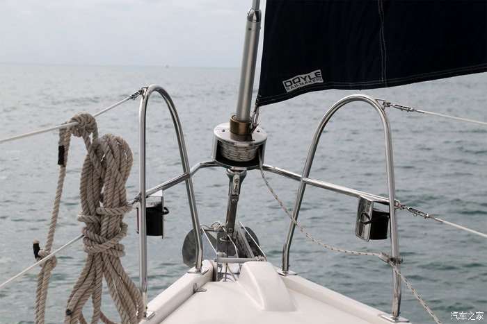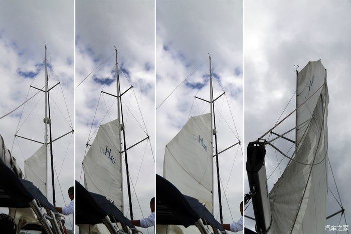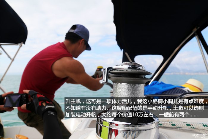升主帆,这可是一项体力活儿,我这小胳膊小腿儿是有点难度,不知道有没有助力。这艘船配备的是手动升帆,土豪可以选则加装电动升帆,大约每个价值10万,一艘船有两个……