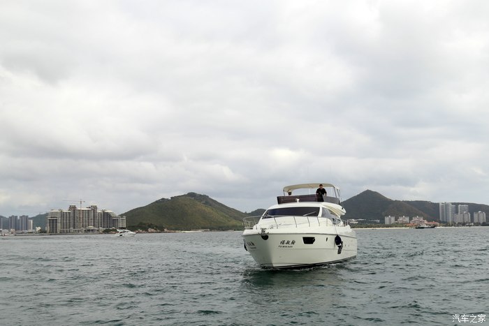 玩得正嗨时,一阵阵轰隆轰隆的发动机声音慢慢逼近,在三亚湾,这样的游艇很多,这样的土豪也很多。而我们只是路过打酱油的。