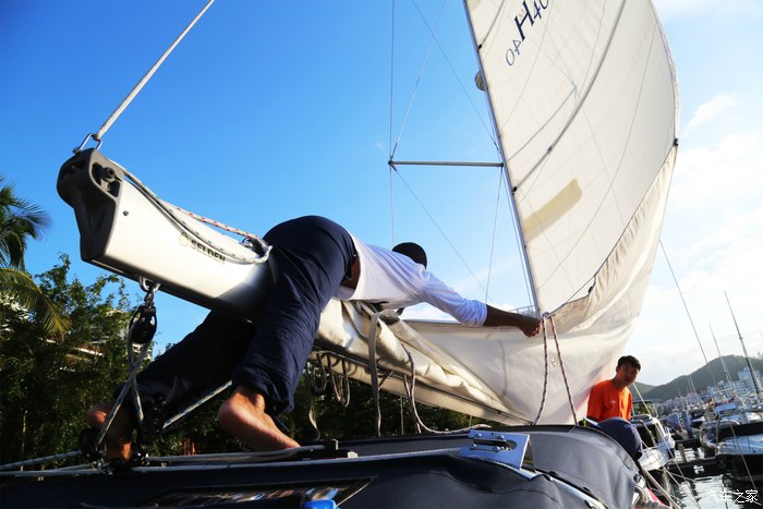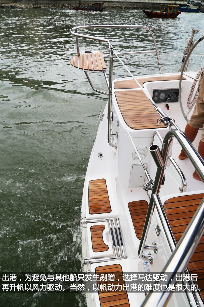 出港,为避免与其他船只发生剐蹭,选择马达驱动,出港之后再升帆以风力驱动。当然,以帆动力出港的难度,也是很大的。