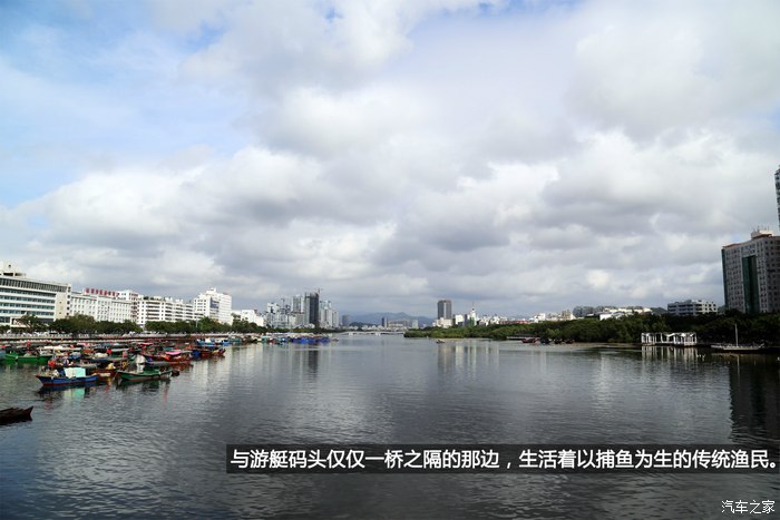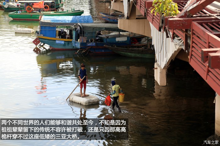 ?三亚河,这是交织了辛勤与奢华的地方;一座三亚大桥,把两种截然不同的风景隔绝的近在咫尺。这边,大片闪着光的豪华游艇,只是船主们偶遇玩乐或招待亲朋的玩具;而那边,生活着以捕鱼为生的传统渔民,一艘古老的木船,承载着一家人所有的生活起居。两个不同世界的人们能够和谐共处至今,不知是因为祖祖辈辈留下的传统不容许被打破,还是只因那高高的桅杆穿不过这座低矮的三亚大桥。而我,只是桥上看景的一个过客。