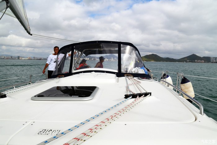 游艇与帆船,好比汽车界的自动挡与手动挡。前者好开,但参与度小;后者考验技术,但驾驶乐趣很多。但与汽车不同的是,不管技术好不好,前者是超级费油,后者如果你愿意,它可以完全不用油。于是,两个寂寞无聊的土豪,开着一艘更大号的游艇,气势磅礴的追上我们之后,觉得无聊,便默默的调头回去了。