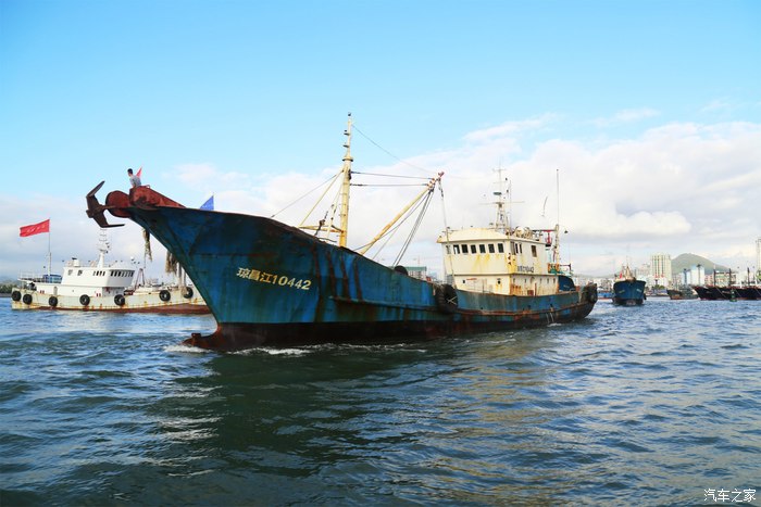 巨大的渔船,不知道打扮成这样,是捕捞什么大型鱼类的?