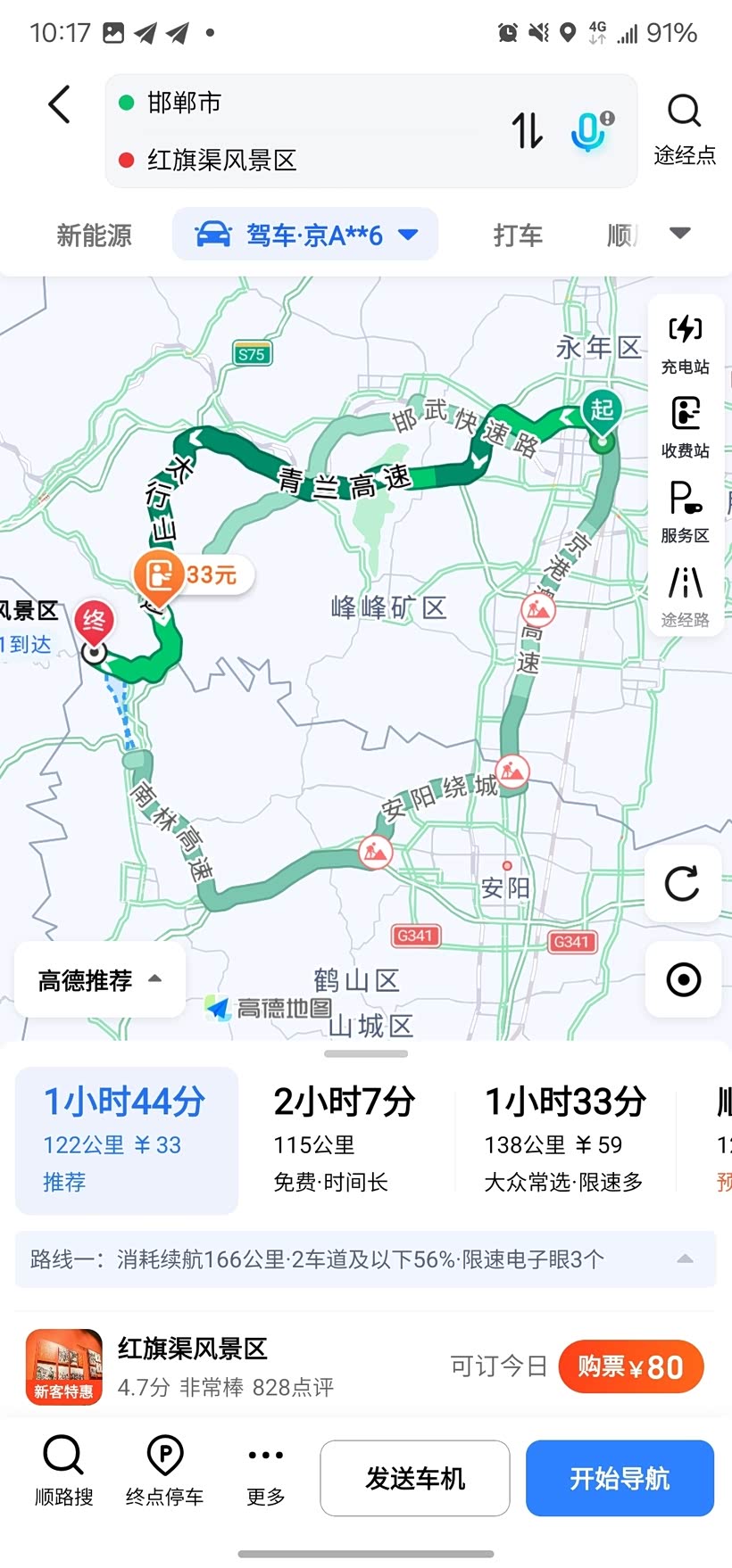 第一天,北京到邯郸,距离480公里,速度控制在110左右,中途不用充电。景区推荐,邯郸道!这个景区年初央视做过宣传,一个可以体现中国传统文化的城市,几千年没有改过名字的城市,还是一个成语之都!这样的文化之都值得我们去打卡,值得推荐!