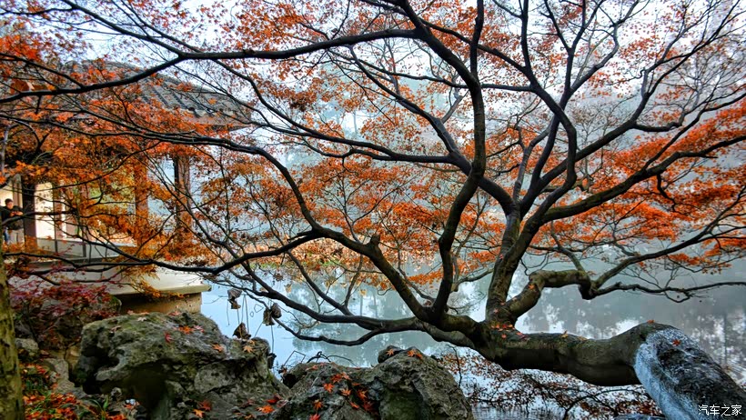 此前只知曲院的“映日荷花别样红”,没想到初冬的红枫也是格外出彩,一扫我对漫天雾气、不见阳光的怨念。