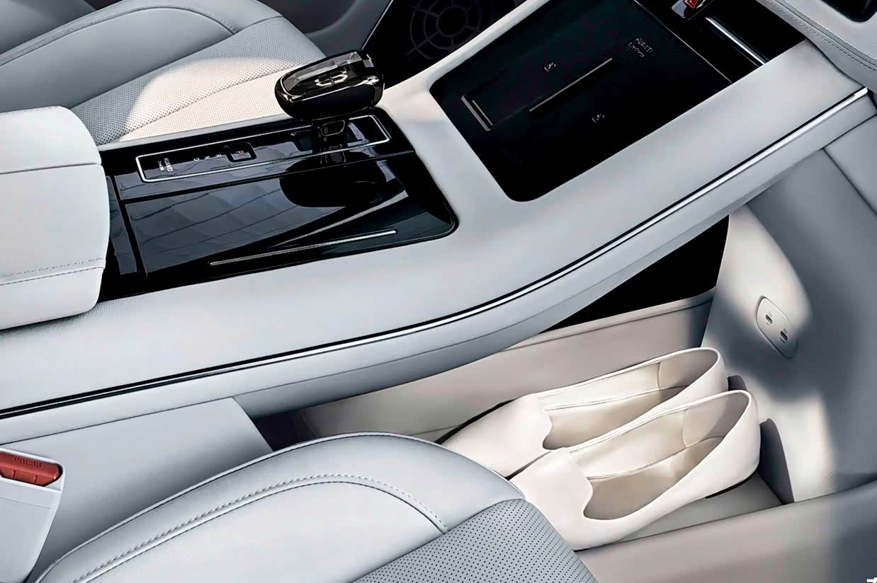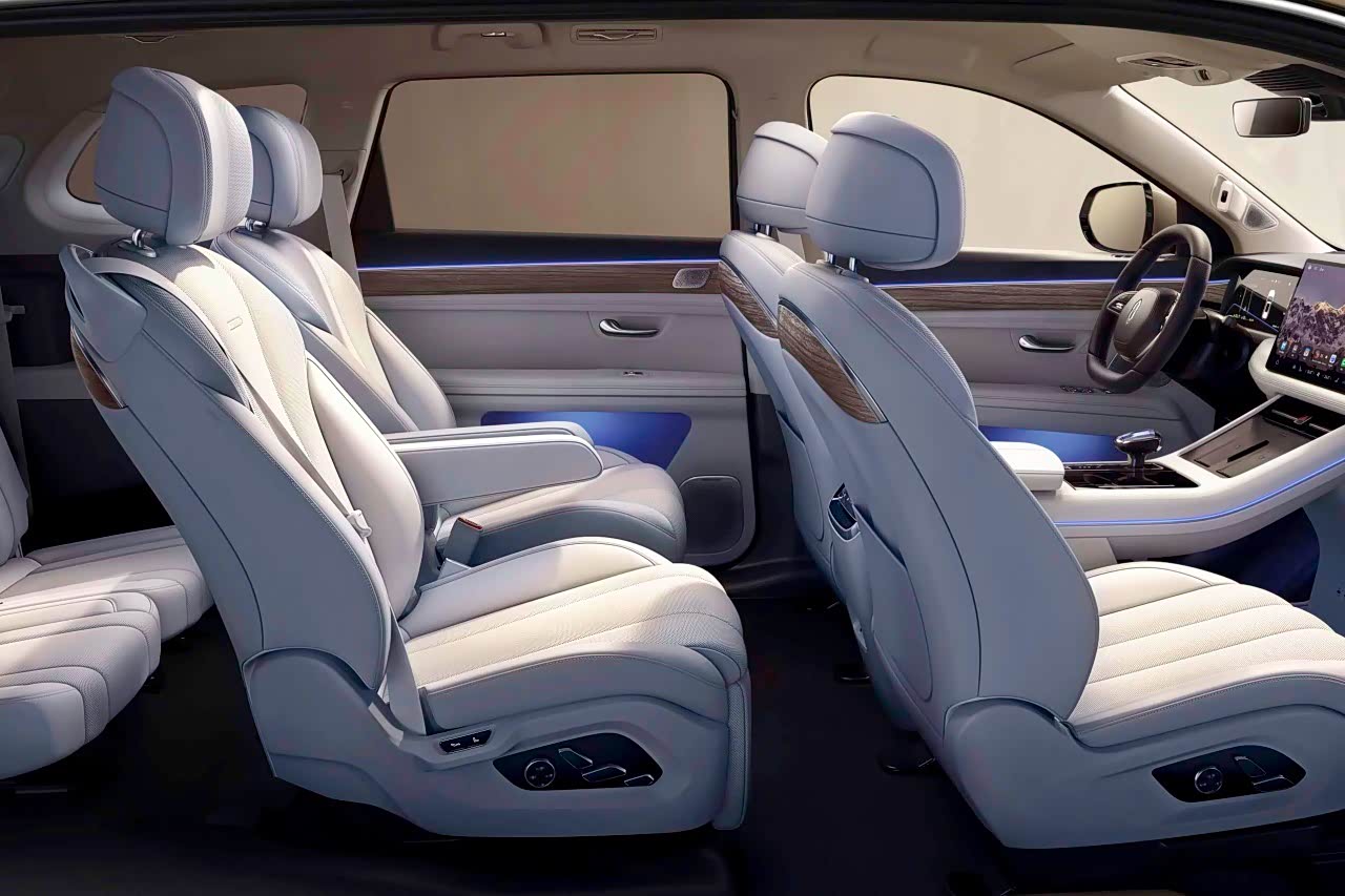 舒适与空间表现同样亮眼,大五座布局让二排腿部空间达1030mm,后备箱容积850L,满足家庭载物需求。全铝合金双叉臂前悬搭配五连杆独立后悬,配合全车静音科技,滤震与静谧性远超同价位竞品。