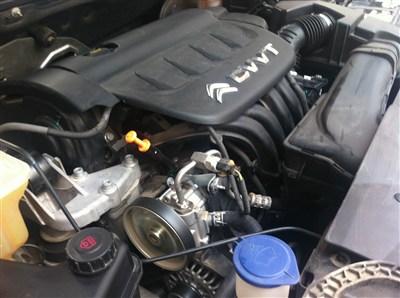 打开机器盖,发动机还算干净,没有漏油的情况,自我感觉保持不错。