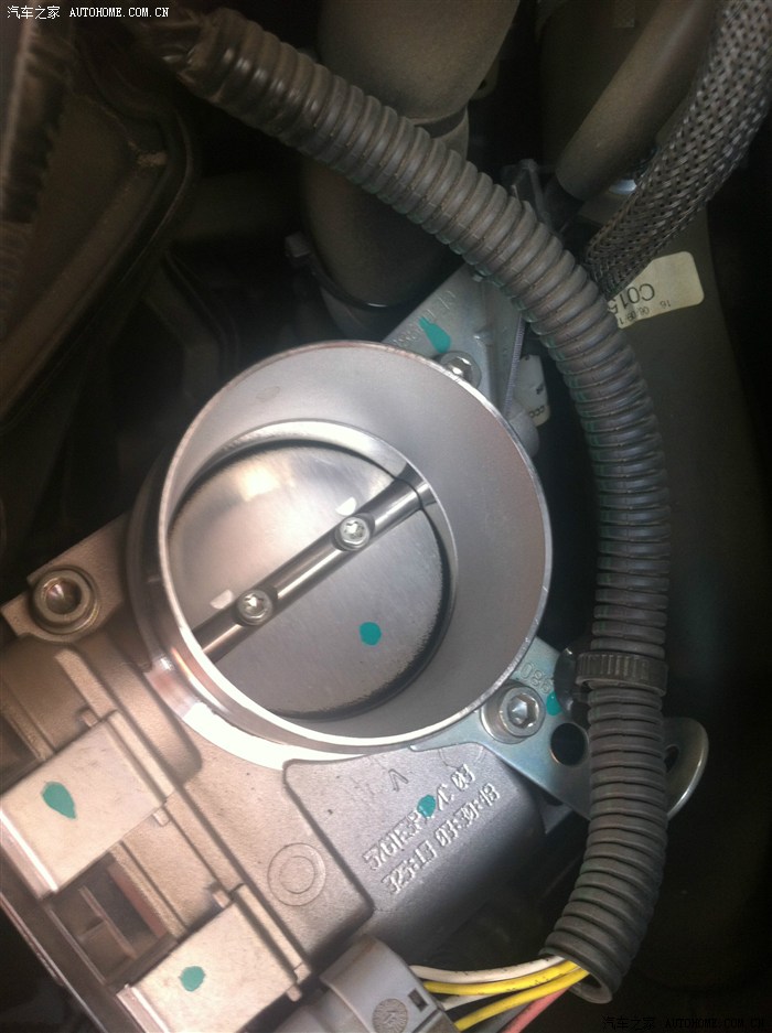 时间过得真快,自从把C5带回家转眼已经1万多公里了,在这段时间里给我带来了太多的方便、舒适、快乐和自信,当然她也有及其少量的不足,但优点要远远大于缺点,一次周六下午在楼下打开机器盖例行检查,看看有没有油泥,还不错,挺干净,突然想起首保的时候问过师傅要不要清洗节气门,师傅说不用,还早着呢,再保养几回再说,于是就回来了,闲的时候在论坛上看到了不少节气门清洗时的照片,大多都是黑色的或上面好多油泥或者机油,特别是带涡轮增压的节气门更加吓人(参见标志3008 1.6THP160 PST1.8T DS5 1.6THP160 THP200 等。。。),为什么非等到脏的不像样子或者出现发动机故障的时候才去清洗呢?于是动手清洗一下的想法就产生了,但又有不少朋友说清洗节气门后必须电脑初始化。。。。经查相关资料和电路原理,决定当小白鼠,哪怕先拆开看看不行再装上去、如果出现抖动或故障提示灯亮起就拔掉电瓶线断电10分钟再通电、哪怕再不行了拖到4S以后再不干了(但从科学依据来看觉得出问题几率非常低)