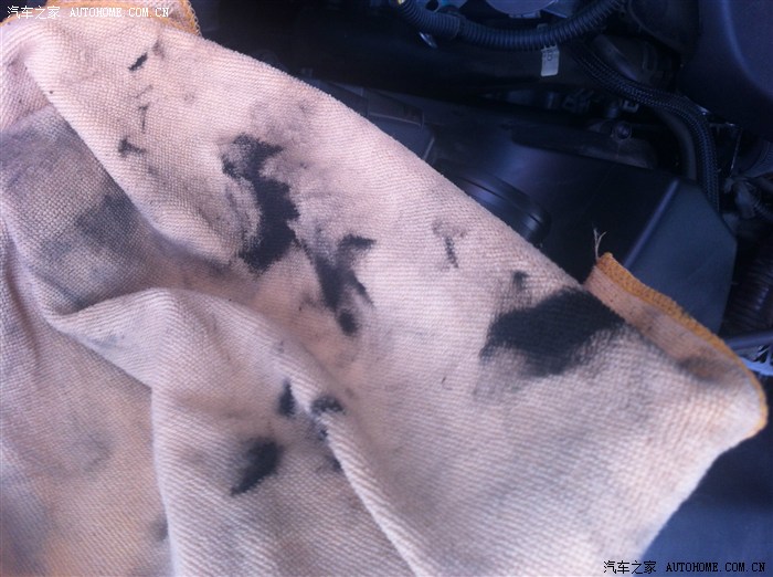 看看擦过后的抹布,从近距离观察和靠近鼻子闻后,说明蝴蝶阀反面也没有机油或油泥的现象。