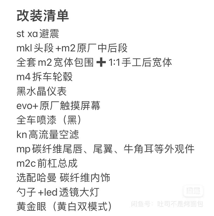 无事故 全车做漆 14w公里 整备完毕 1:1m2c 改装清单如图 过户次数较多 介意勿扰