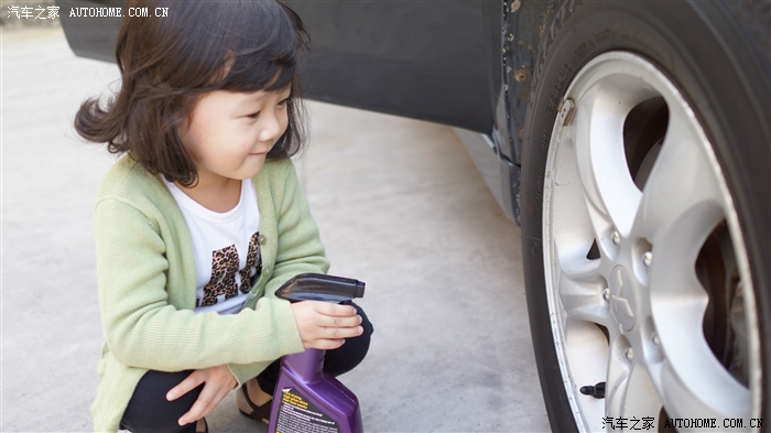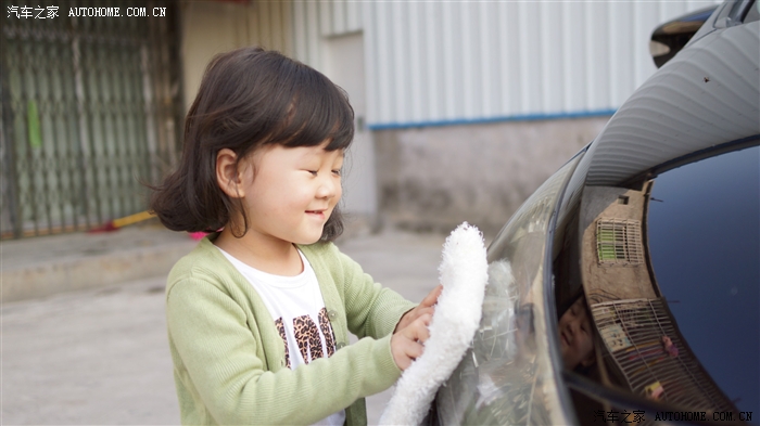 '爸爸说洗完车子带我们去吃KFC,我来帮忙擦,本姑娘嘴馋啊!!!'