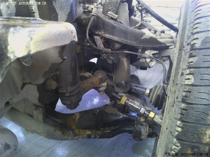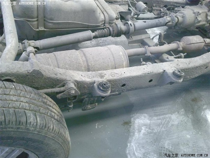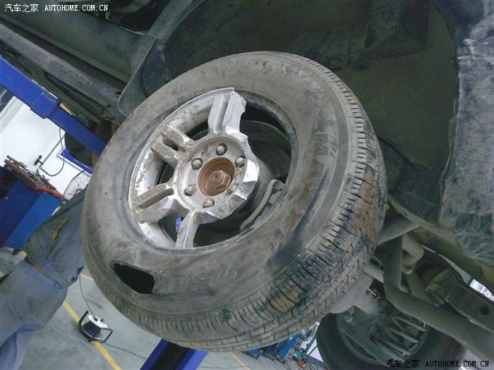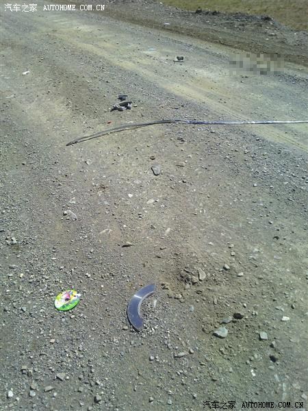 看到上图中,轮胎上那个大洞了吗?这是车辆的左侧后轮,应该是当车子在左侧路基中,被石头划破的。