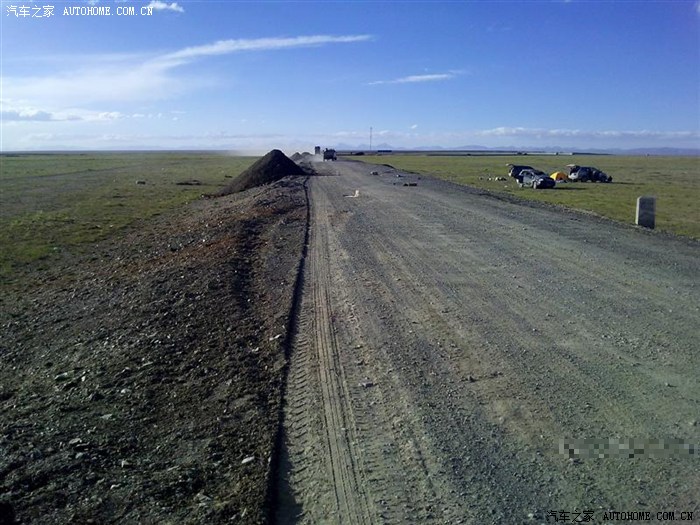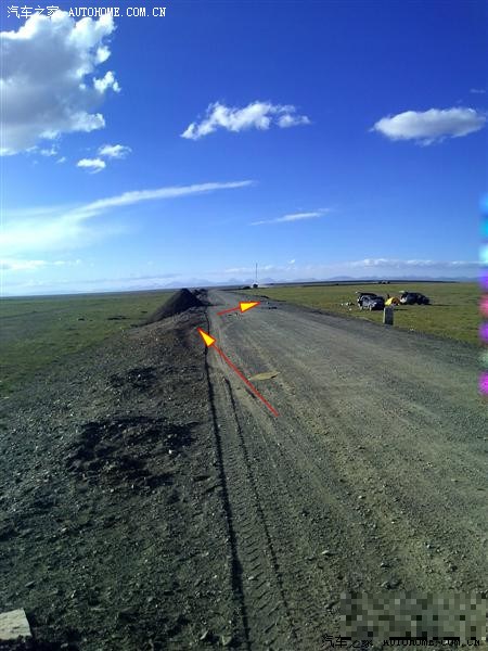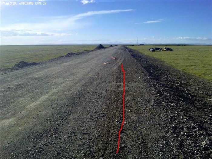 从上图可以看到,左侧路基是松软的泥土。车子左侧的车轮在里面压出了深深的一到车轮印。