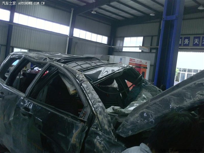 1)车轿变型,4个车门,都产生变型。副驾驶位置A柱变型、B柱弯曲。副驾驶的车门严重变型。
