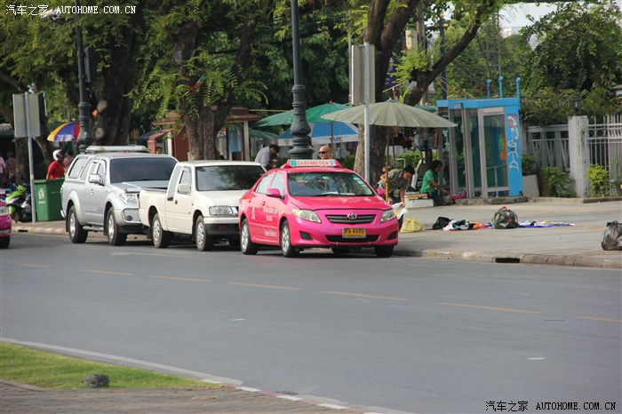 上岸后,我们步行来到大皇宫。这里说明一下:新马泰三个国家交通是靠左行驶,方向盘在右边的。这是泰国的出租车和公交车(泰国的鬼子车居多