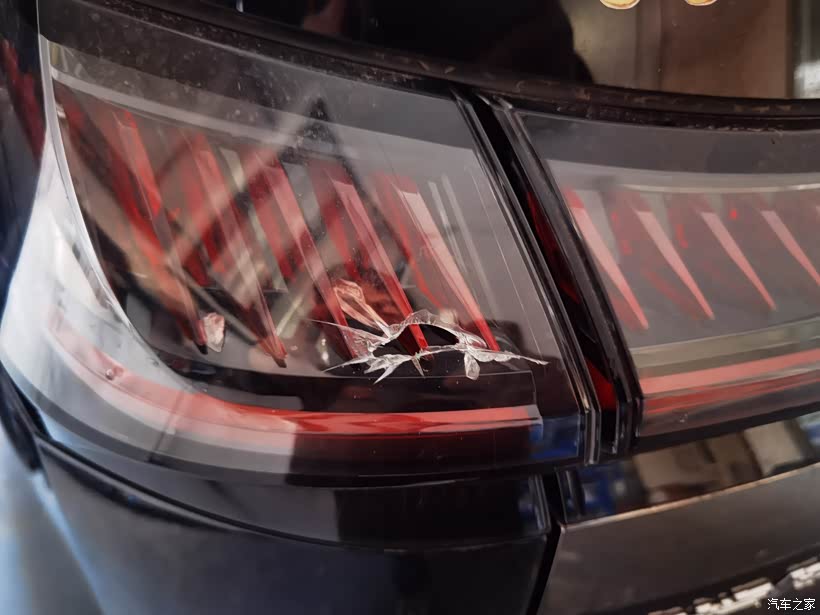 修复后完全看不出来,贴的车衣也只有一个小点的破损,结果发现尾灯破了个大洞!!!