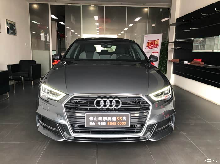 由于自己开7座车,所以盘算着家里的小骐达换台其它风格的,买前考虑宝马3系,进口cla220,两家店看了下实车,都没感觉。后来到奥迪看了下,反而看上了a3运动版,看了1.4和2.0的数据后价格差一万左右,不用多想就决定2.0T(EA888三代,这发动机就不用多解释了)。现场下订白色三厢,但。。。。却被告知没有现车,要二个月时间。。。。。。放弃了,1.6号当天回家后网上查看了当地所有4s一个个的打电话问是否有现车,都一一说没有。。。。意外发生在次日早上,我还在睡觉就被一个陌生电话吵醒了,接听后原来是一个销售员的电话,说他们有一台三厢2.0的运动版季风灰,要不要考虑,约好了时间到店谈,我就爬起来上网查了下季风灰到底是什么样,哈哈哈哈哈一查看,大爱!!感觉比白色更低调耐看,马上就草草收拾了下直奔50km外的那家店。过程就简单直接,谈价格和送的东西,销售保证月底前就能交车。ok,就这样简单的搞定了,1.6号下订,1.15号销售员给我打电话说车到店了,明天就能提。16号早上11点我就过去提我的小三去了,下面上图。。。go