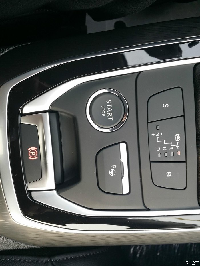 中控档把全景,包含一键启动按键,自动泊车按键,电子手刹和驾驶模式