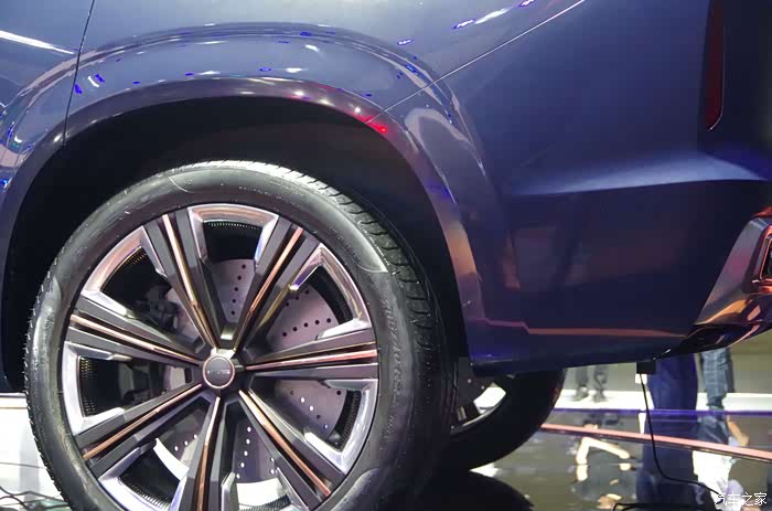 星途VX概念车采用了多辐式轮毂,且采用了多孔式通风刹车盘,看上去很有力量感和速度感。
