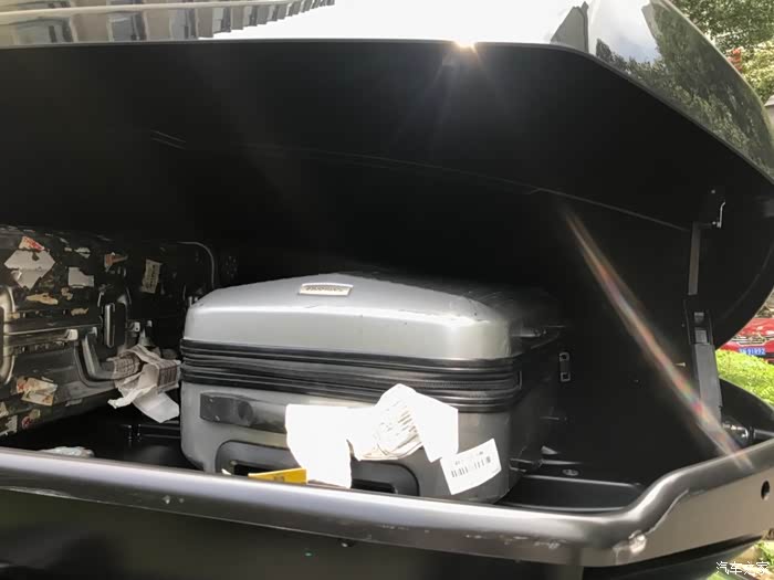 1.根据实测和估算,这个车顶箱能够装下的箱子:28寸3个或24寸4个或20寸6个,以上都可以继续在放一些软包和零散的行李进去