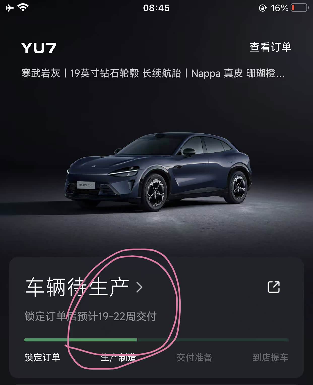 最低配。刚看到。显示交付周期了。有车友群的话拉我。