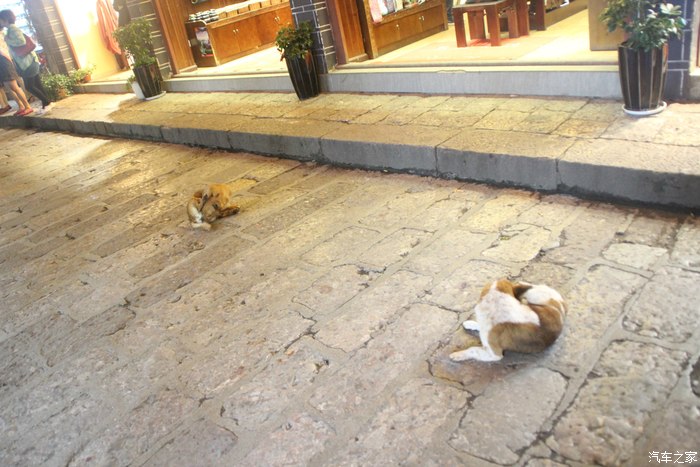 很有趣的两只狗狗。丽江的狗狗也很懒散的,后来我在束河古镇又看到了两只狗狗,也这样相隔一定距离,姿势一模一样。
