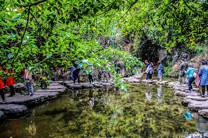 沿着道路往前走就看到了黄果树瀑布。据说很久以前这里盛产黄果,每到丰收季节,满山遍野全部都是金黄一片,青年男女就常在黄果树下谈情说爱,并以黄果树大瀑布作为见证,这个就是黄果树大瀑布的由来。另外一种说法比较朴素,说“黄果树”是“黄桷树”的谐音,因为本地口音当中“果”和“桷”的发音相近,所以黄桷树就叫做黄果树了。