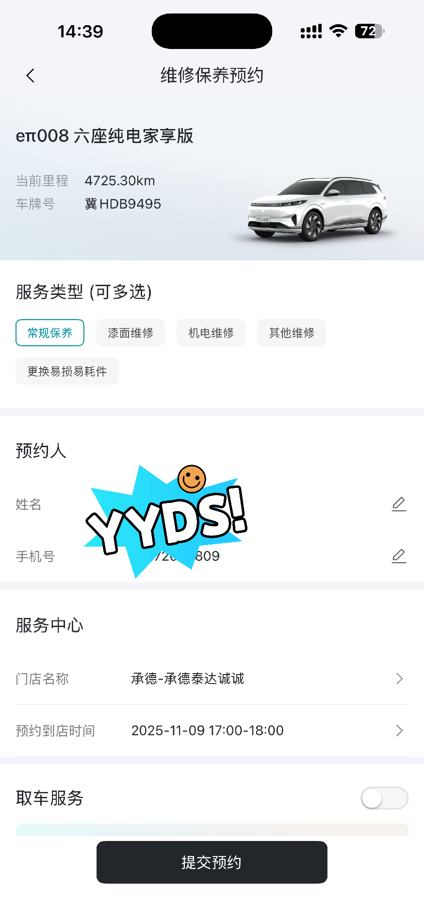 - 预约:提前1周通过车主APP/电话预约,免排队;