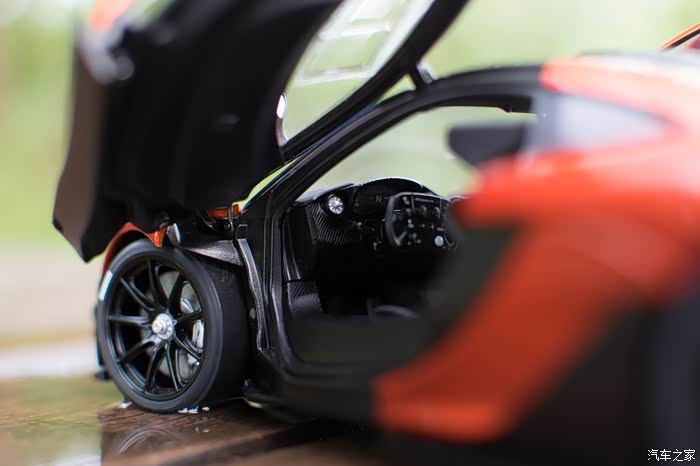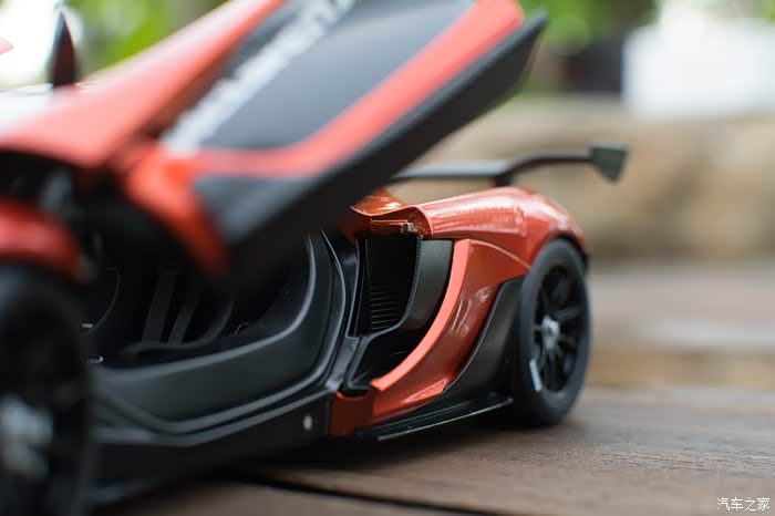 而我说的小部分,也就仅仅是这一小部分了,由于后引擎盖没办法拿下来,我就很好奇的把车拆开了一次,发现车壳里是没有发动机细节的,只有透过玻璃能看到的这一小部分,这样的定价再加上这样节约成本,花钱买了的客户那得多伤心啊?不过还好,该镂空的地方还是镂空了,“McLaren”字样用的也是立体的金属贴纸,起码在外观上还是过得去的。