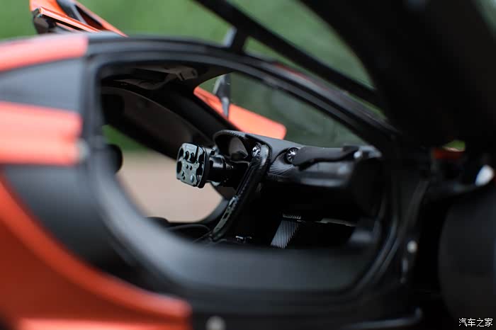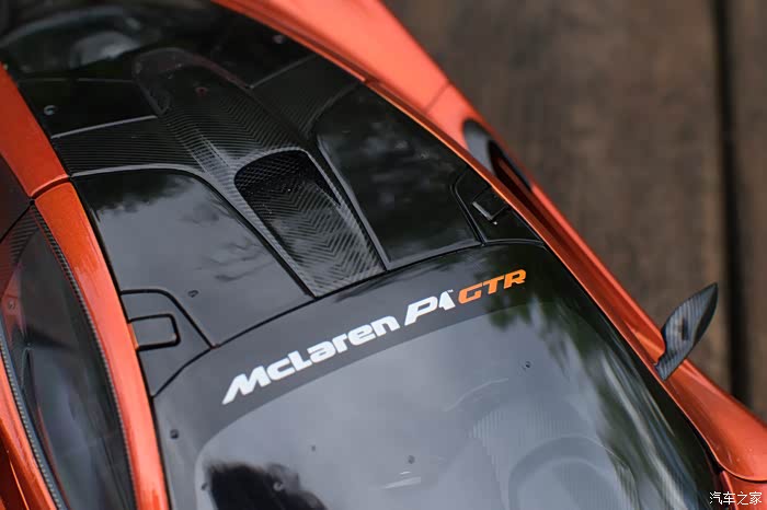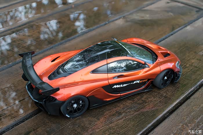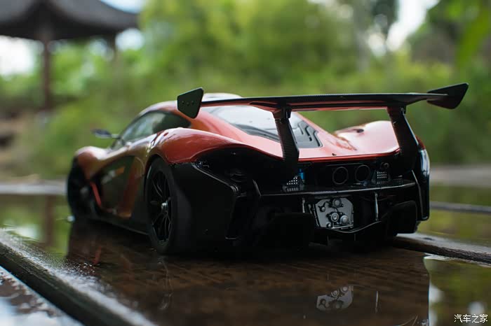 说到黑压压的一片,一大原因也是因为涂装设计的问题,P1 GTR的主打黄色在车尾部分看上去就完全不一样了,颜色会从后裙板一直延伸到扩散器,是两种完全不同的观感,而图上我的这台是个火山橙的配色,跟普通版P1的主打色相同。尾灯是在排气管左右两边的两个小方块,完全赛道化的设计,普通版P1的那标志性的线条状尾灯当然也是没有的了。